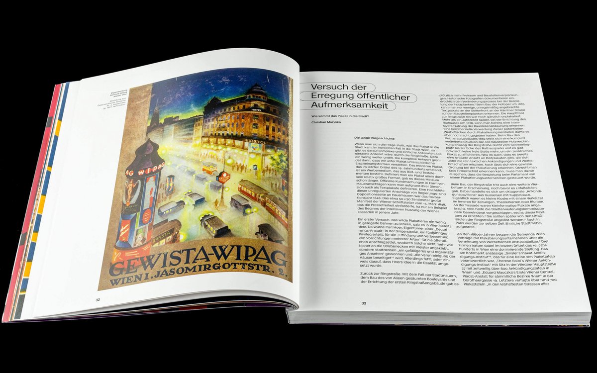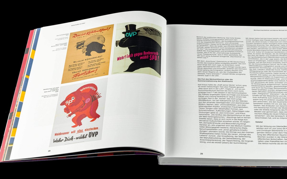 More than one hundred years ago, the City of Vienna decided to systematically collect posters. Today, the poster collection of the Vienna Library in Town Hall is one of the largest in the world, with more than 400,000 items. This publication provides insights into the history of collecting and preservation, with impressive examples from the fields of politics, product and culture posters illustrating the broad spectrum of the Vienna Library’s collection and visualising a century of poster history.