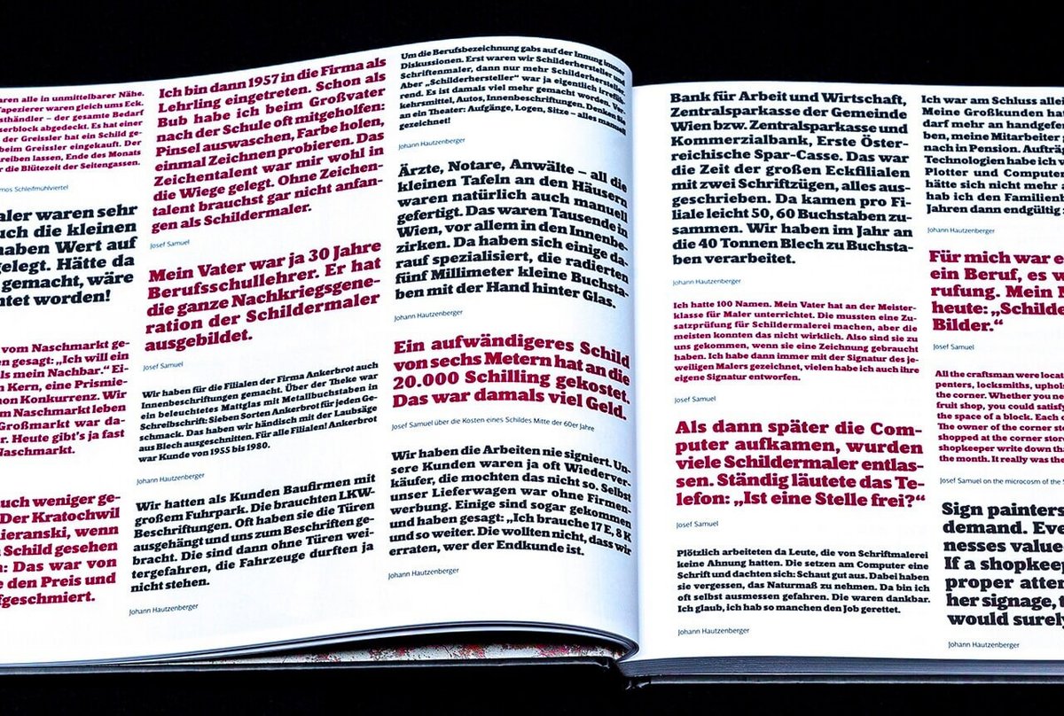 The high-quality photography throughout is by Daniel Gerersdorfer and Stephan Doleschal. Whether you’re interested in history, art, architecture, urban design, signpainting or (of course!) typography–you will find loads of visual interest and inspiration in these 160 carefully curated pages.