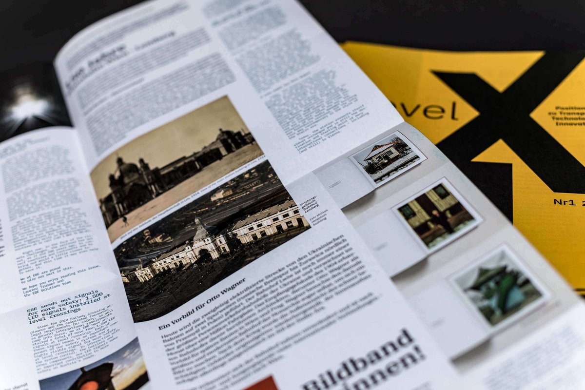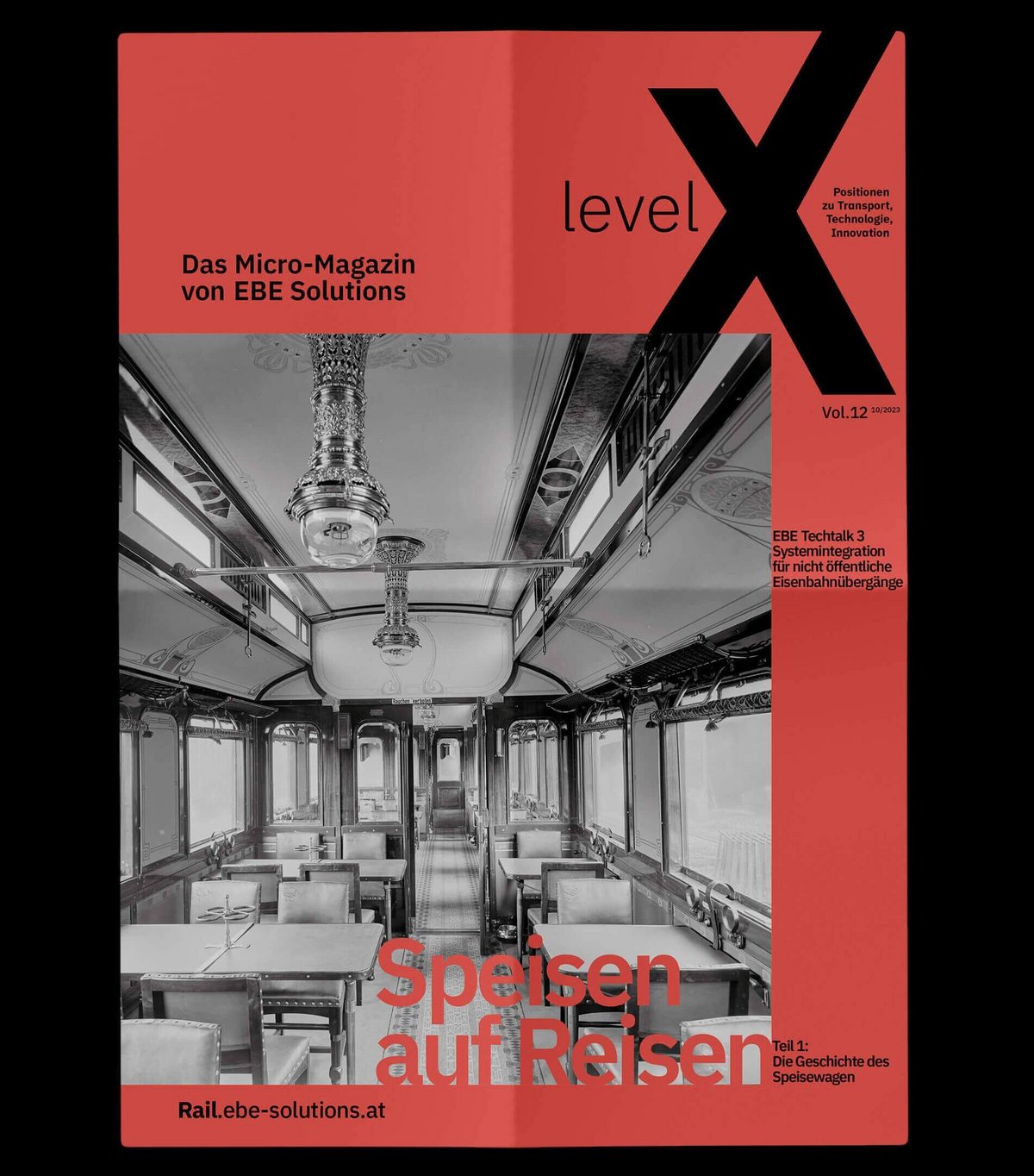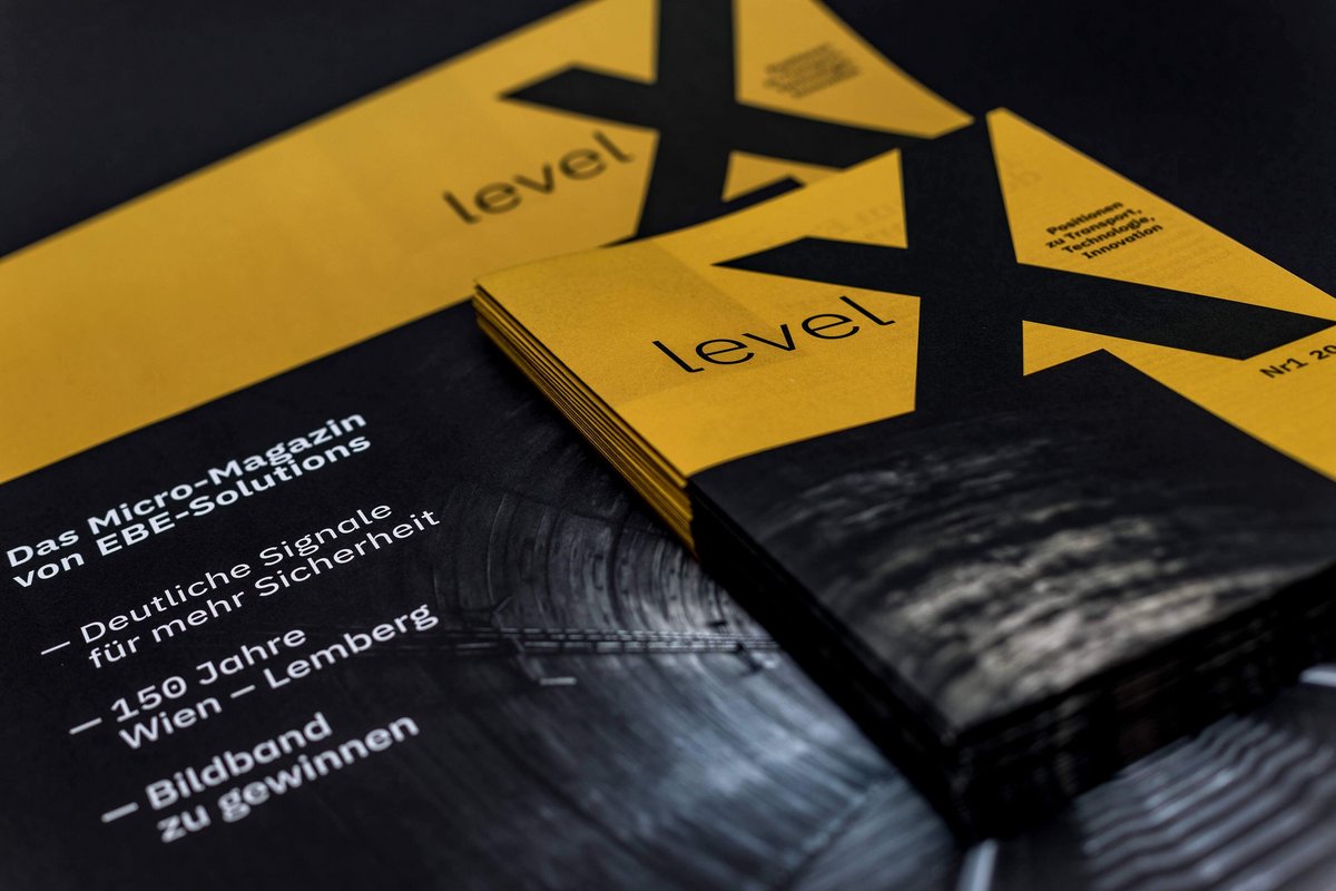 The bilingual micro-magazine Level X was aimed at a handful of infrastructure decision-makers in the railway industry and served to promote customer loyalty. It was published four times a year and was designed to be both a magazine and a poster.