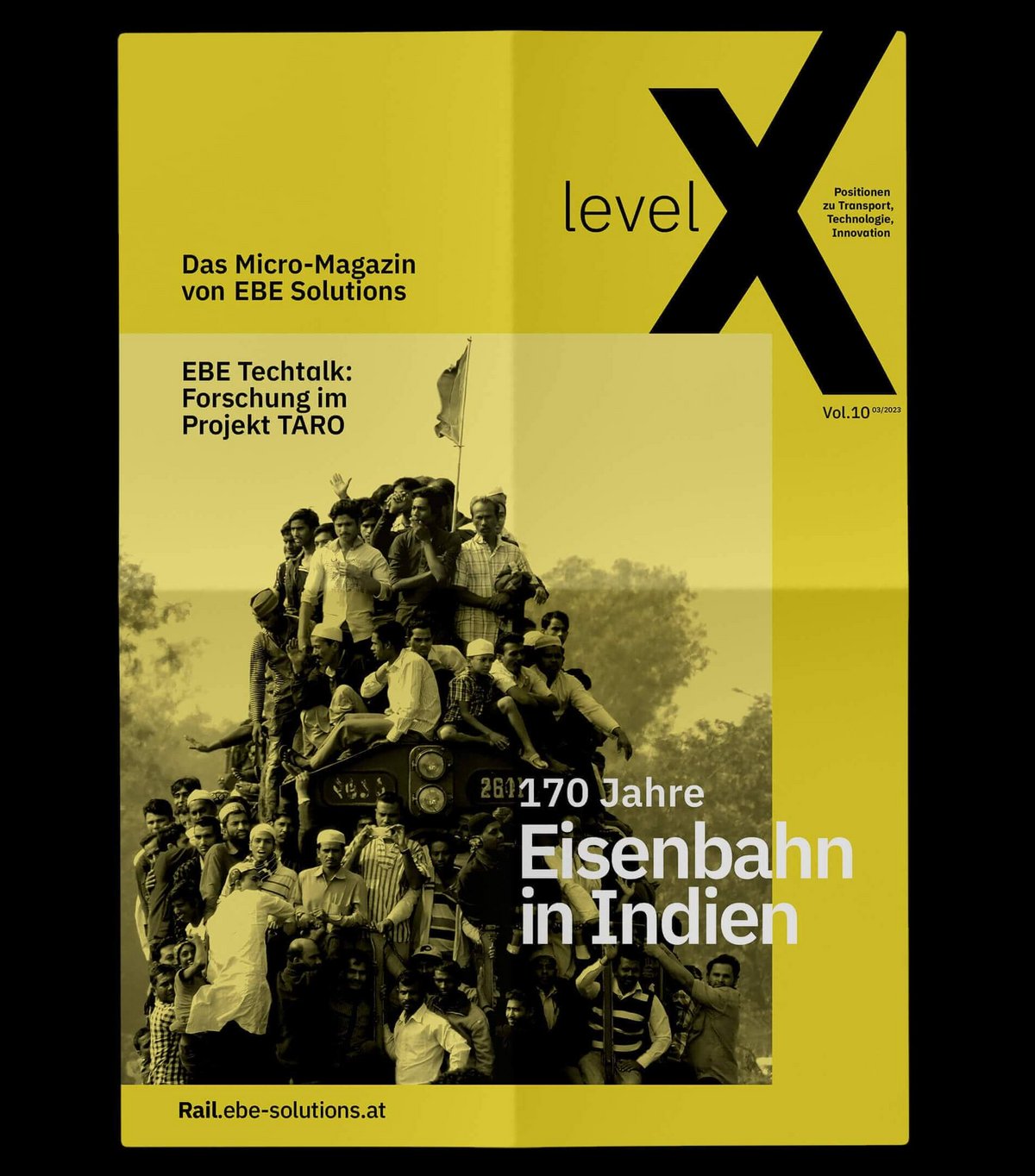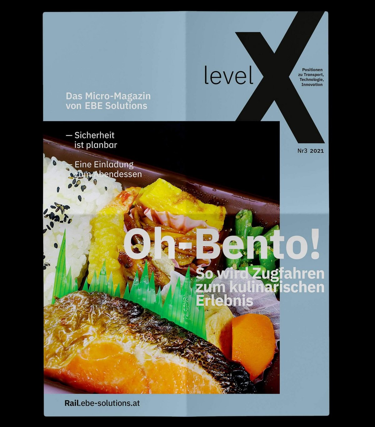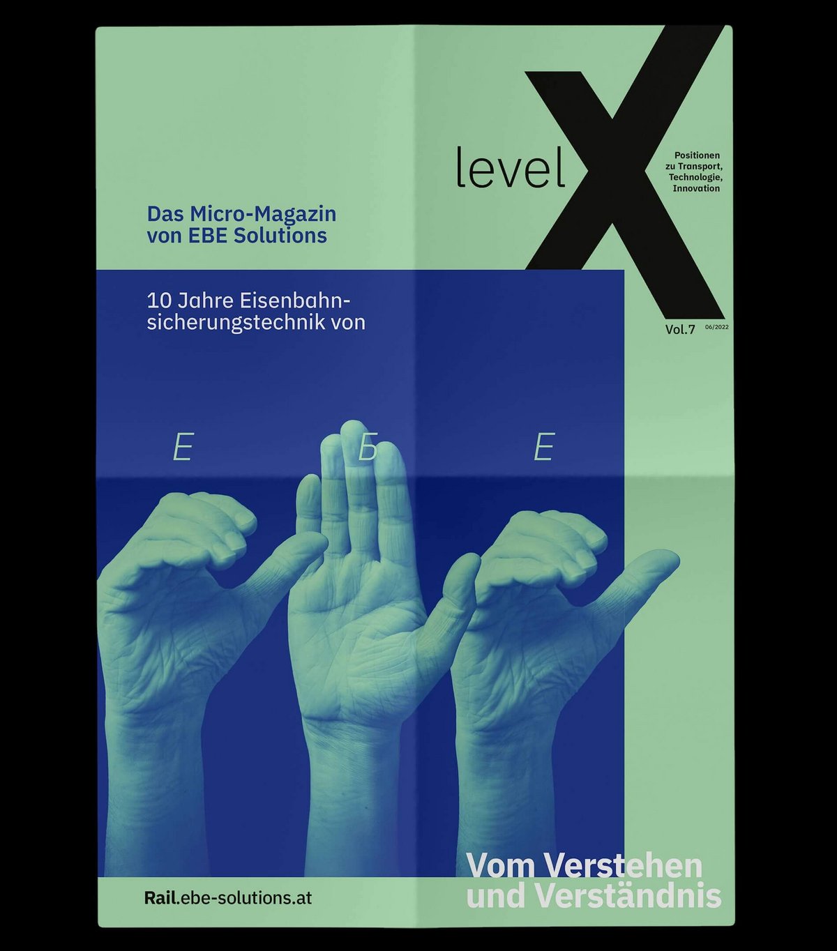 The bilingual micro-magazine Level X was aimed at a handful of infrastructure decision-makers in the railway industry and served to promote customer loyalty. It was published four times a year and was designed to be both a magazine and a poster.