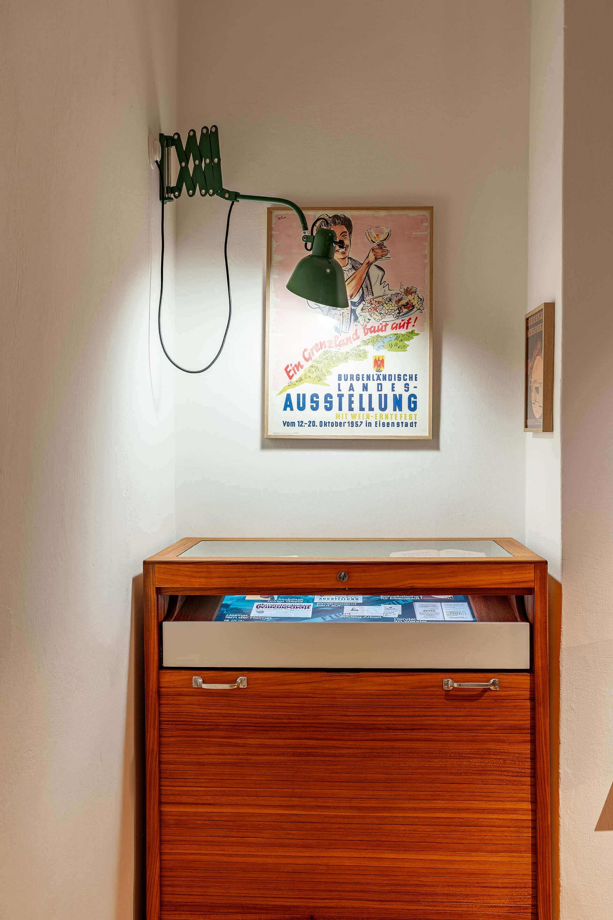 The museum is housed in the Stadtvilla Eisenstadt, a former doctor’s villa at Pfarrgasse 20, built in 1950, whose architectural qualities and fine detailing shape the exhibition’s dramaturgy, staging and interpretation. I curated and designed the permanent exhibition which takes the mid-twentieth century as its central point of reference.