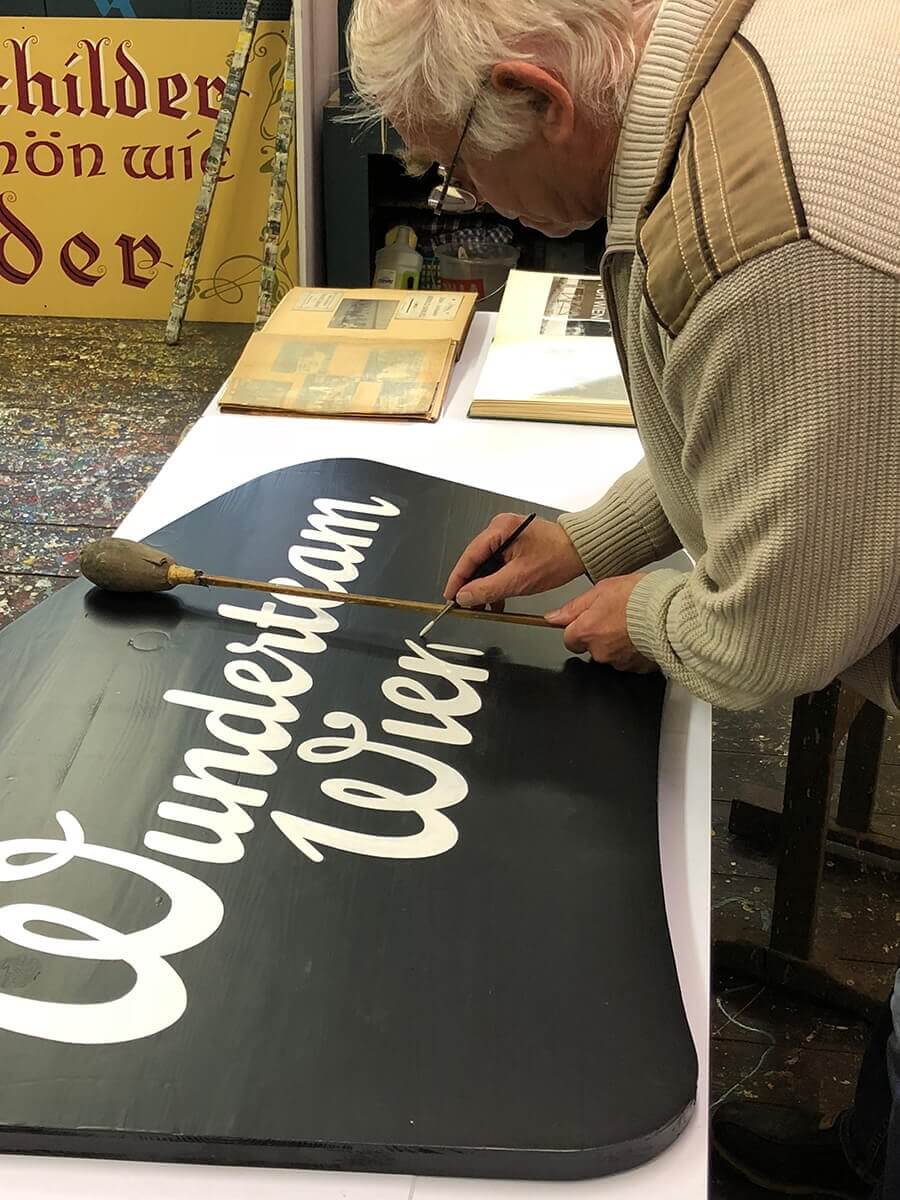 Wunderteam logo, painted here by Vienna’s last sign painter.
